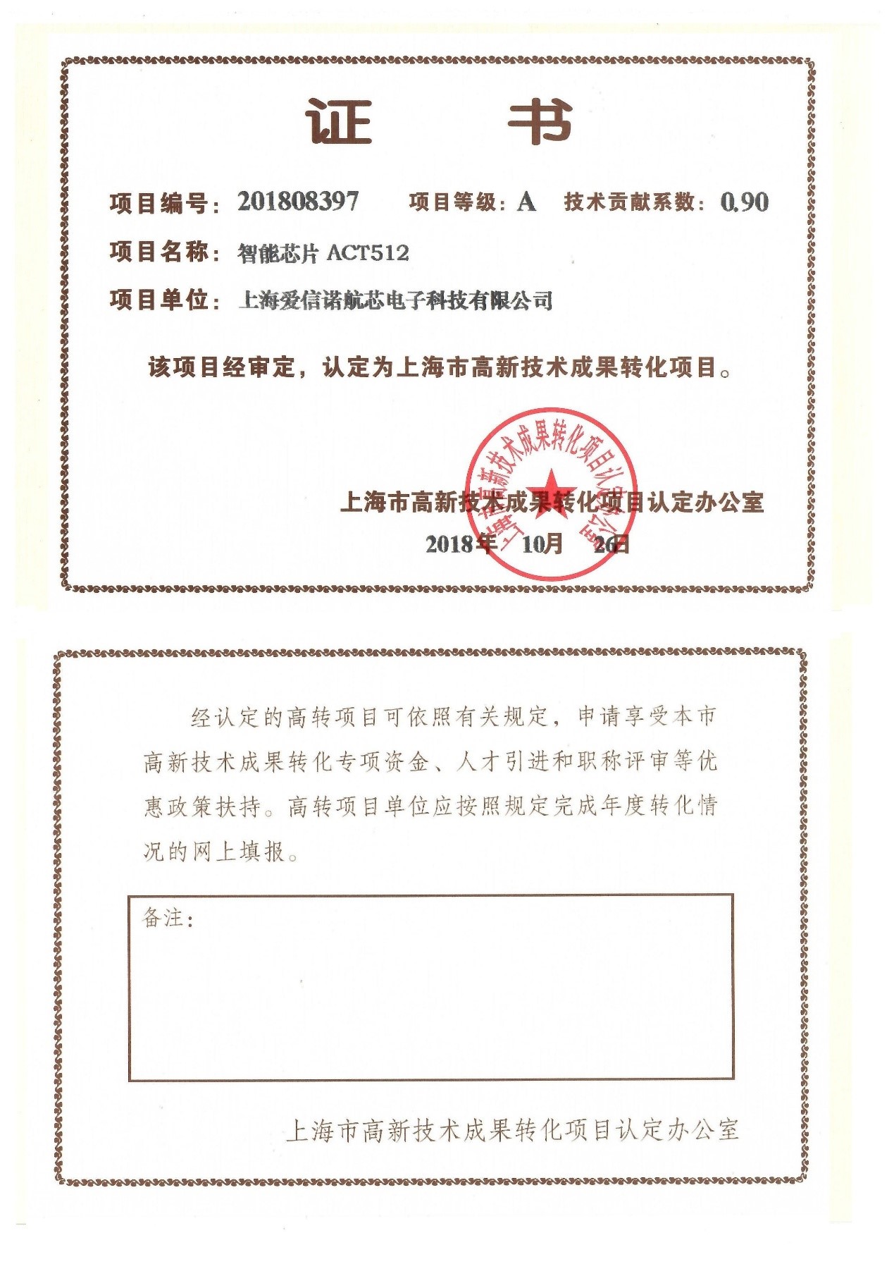 我司“智能芯片ACT512”項目通過審核認定,批準為上海市高新技術成果轉(zhuǎn)化項目。 ...