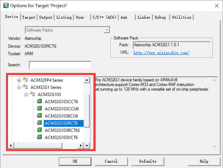 1.2 Keil使用流程(以ACM32G1XX系列為例)