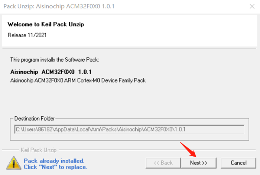 C:\Users\用戶名\AppData\Local\Arm\Packs\Aisinochip