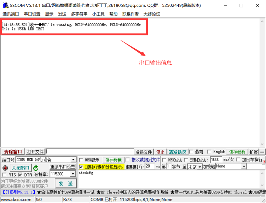 目前芯片不支持下載后自啟動,需要按下RESET鍵后,程序才能運行,以GPIO口翻轉控制LED燈閃爍為例,部分示例代碼(完整代碼見附錄)和現象如下: