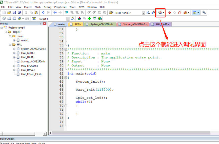 上述設置完成好后點擊Download andDeBUG,燒錄成功