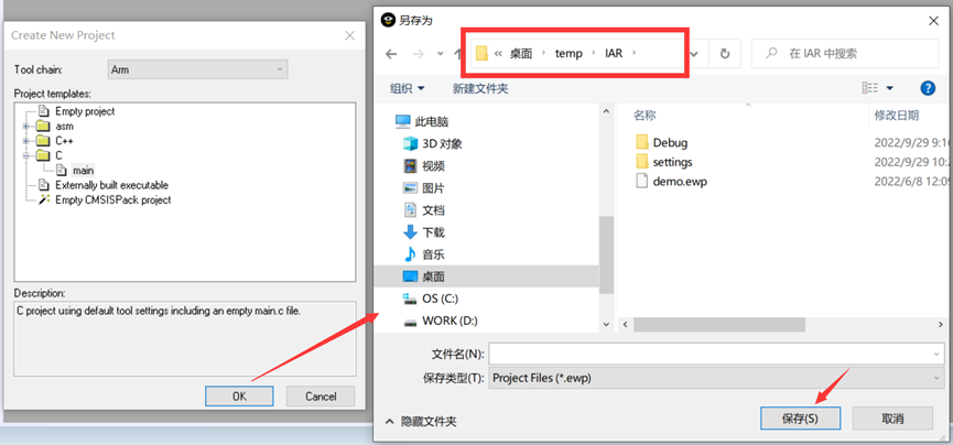 選擇對應的工程模板后點擊“OK”,之后將工程保存在對應的文件夾。
