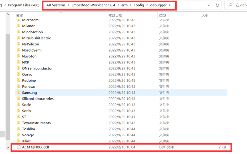 ? 將 ACM32F0XX.ddf 放置于 IAR 的安裝目錄的\arm\config\debugger下