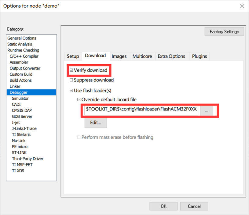 ? 將其余 4 個文件放置于 IAR 的安裝目錄的\arm\config\flashloader下