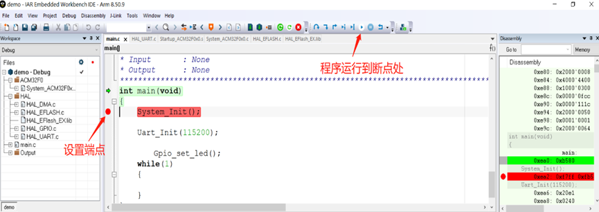 斷點是調試器的功能之一,可以讓程序停止在設置斷點的語句。在調試過程中,可在程序的某一處設置斷點再點擊Run運行,此時當程序運行至該位置時自動停止。