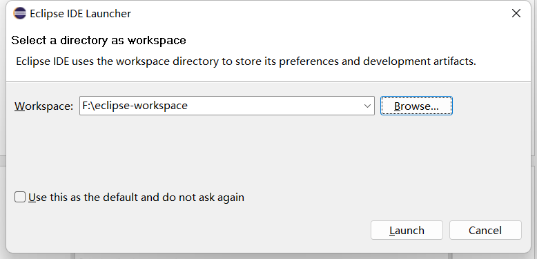 打開eclipse軟件,會彈出對話框讓選擇workspace,界面如下圖所示: