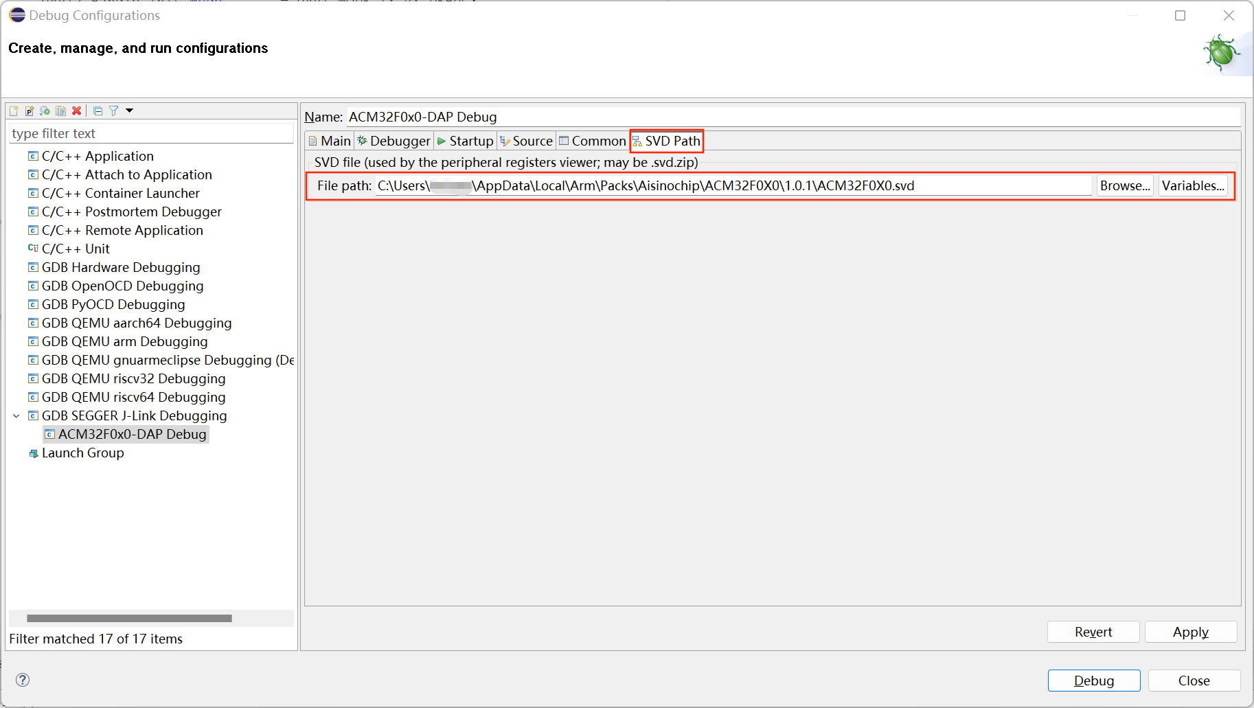 ACM32相關PACKS安裝后,SVD文件可在相關文件夾內索引,索引地址為