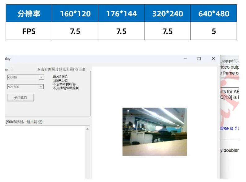 該方案的刷新率測試結果如下表所示。由于是基于串口上位機能正常顯示圖像測得幀率,如除去串口傳輸,僅進行數據采集,那么實際幀率將會更高。