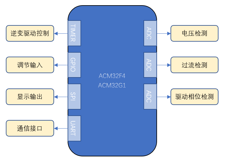 基于ACM32F4/ACM32G1系列MCU的控制電路結構框圖,如下圖所示: