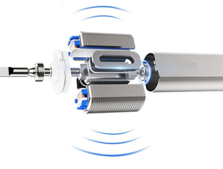 振動式的實現有兩種方式,一種由偏心振動電機實現,多用于中低檔的電動牙刷方案。該種方式的電動牙刷振動感強,振動無序。另一種則是采用線性電機,業內也稱之為磁懸浮電機。