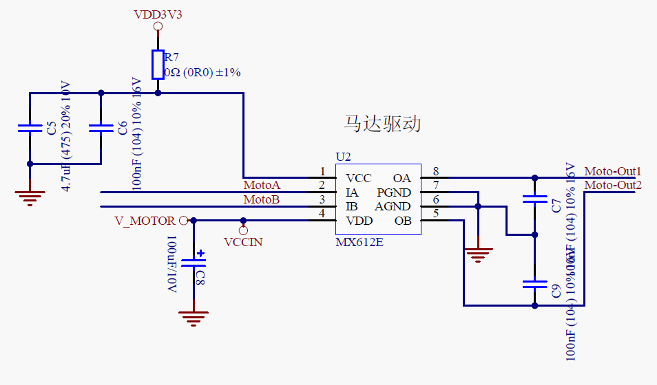 電動牙刷的驅動系統是通過H橋芯片MX612E進行處理,MX612E的輸入端連接芯片的PWM互補輸出端口。如下圖所示: