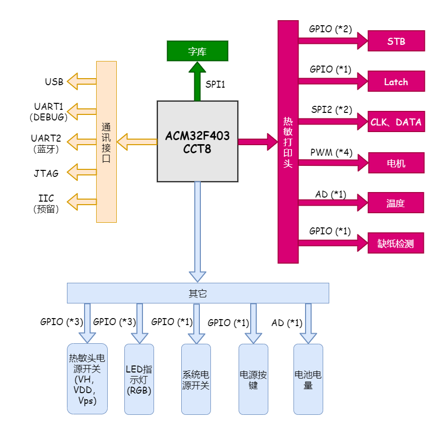 圖2. 基于ACM32F403熱敏打印機設計方案框圖