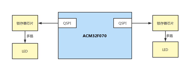 上海航芯LED燈箱控制器方案以ACM32F070CBT7為主控芯片,主頻64MHz,128KB eFlash和32KB SRAM,帶有兩路高達50Mbps的SPI接口。SPI模塊支持1線、2線、4線傳輸模式,在4線傳輸模式下,每個時鐘周期可同時輸出4bit數據,每根SPI數據線可作為一路鎖存器的串行輸入,因此一個SPI模塊可同時輸出控制32個LED或者數碼管的引腳,大大的提高了控制效率,可以為MCU節省大量的時間去處理其他任務。